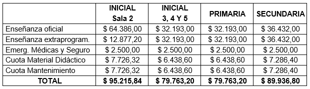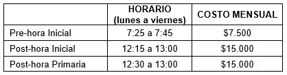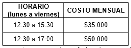 (*) Para las alumnas de 3° a 6° que se queden en el colegio hasta el horario de inicio de la actividad, el arancel será de $30.000.-